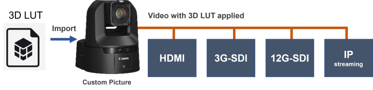 | Canon Log 3, HDR(PQ), HDR(HLG), BT.709 Wide DR, BT.709 Standard, Canon 709 | |