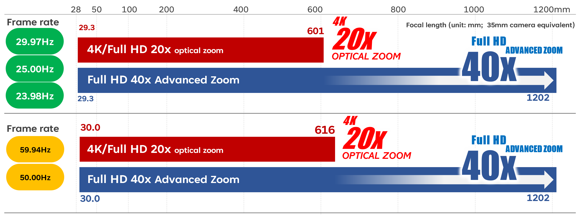 | Optical: 20x Digital: 20x Advanced (FHD): 40x |
