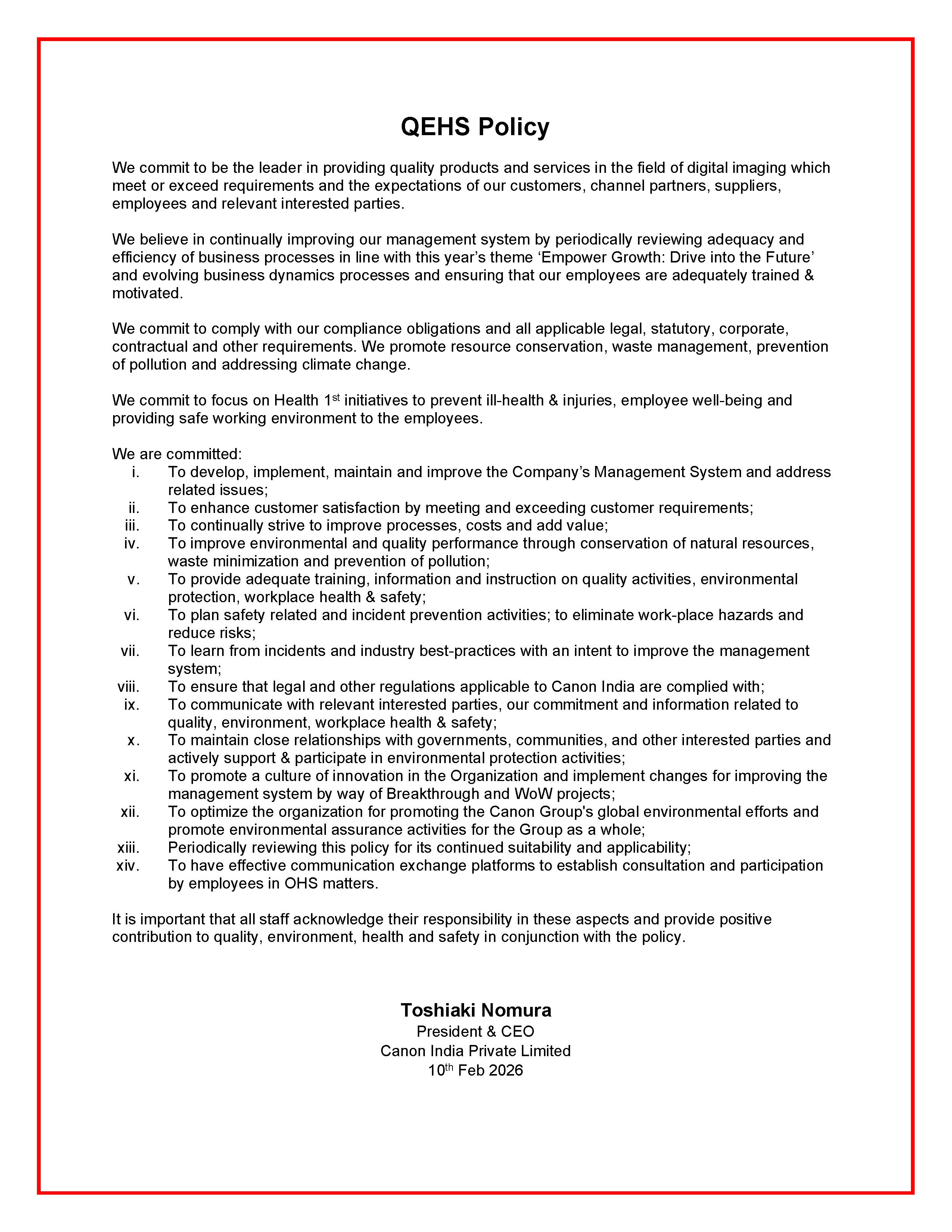 The Business Continuity Management System at CIPL covers Sales and Servicing of its products in the field of digital imaging including functions of Sales, Marketing, Market Engineering, Information Technology, Human Resources Operations, Human Resource Development Academy, General Affairs, Finance & Accounts, Legal & Regulatory, Logistics, QEHS, SIA and Corporate Planning from Corporate Office in Gurgaon, Warehouse at NOIDA and branches at Mumbai, Kolkata & Bangalore.
