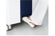 The door swings down automatically by either operation the touch panel or footswitch.