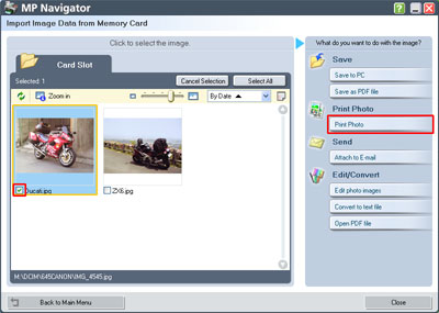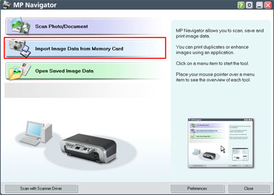 5. Launch MP Navigator and click Import Image Data from Memory Card.