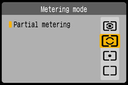 The metering mode is the method of measuring the brightness of the subject. Normally, evaluative metering is recommended.