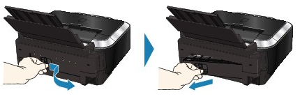 1. Slowly pull the paper out, either from the Rear Tray or from the Paper Output Slot, whichever is easier.