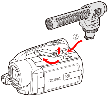 You can attach the optional DM-100 Directional Stereo Microphone to the mini advanced shoe on the camcorder. For details about using the microphone, refer to the instruction manual of the DM-100.
