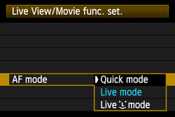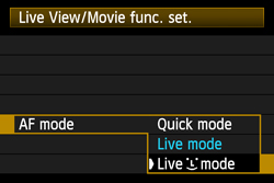 1. Once you have proceeded up to Step 9 of "STEP I. Preparing for Live View Shooting", turn the <Quick Control Dial> to select [AF mode].