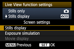 Select [Stills display] or [Exposure simulation], and then press the <SET> button.