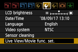 5. Turn the <Quick Control Dial> to select [Live View/Movie func. set.], and then press the <SET> button.