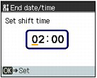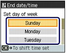 (Down) button to select End date/time, and press the OK button.