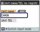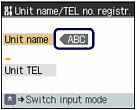 - Here describes the unit name registration. To display the Unit name registr. screen, see "Registering Your Fax/Telephone Number and Name"