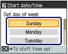 (Down) button to select Start date/time, and press the OK button.