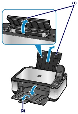 (2) Open the Paper Output Tray gently, and open the Output Tray Extension.