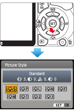 3. Press the <Cross Keys> to select the desired style, then press the <SET> button.