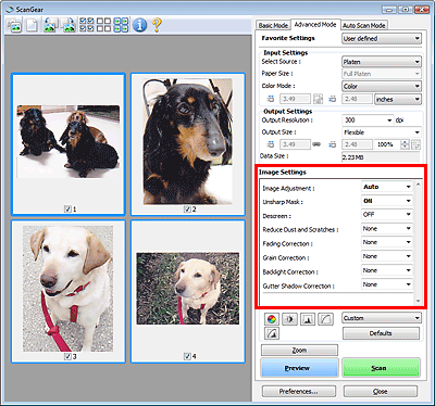 - Selecting Magazine(Color) in Select Source in Basic Mode tab has the same effect as setting Descreen to ON in Advanced Mode tab.