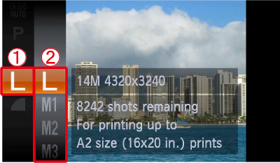 This section explains the method for changing the recording pixels and compression ratio of a shot image.