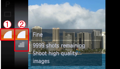 ) button.* The two levels of compression ratios (in order of lowest to highest) and image quality (in order of highest to lowest) are :[Fine] (