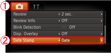 [Date Stamp] to [Date] or [Date & Time].After making these settings, press the <MENU> (