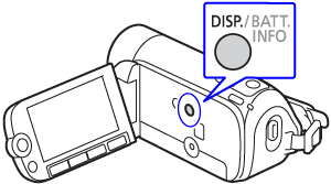 By pressing the <DISP.> button on the camcorder, you can switch the shooting information displays, such as date and camera data (shutter speed and exposure), that appear on the LCD monitor.