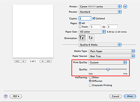 2. Select Custom for Print Quality.
