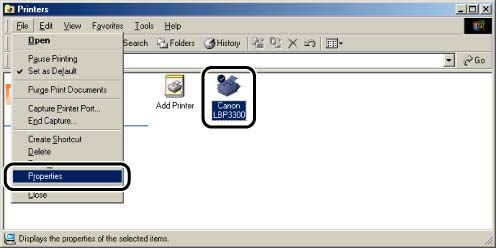 2. Select the icon for this printer, then select [Properties] from the [File] menu.