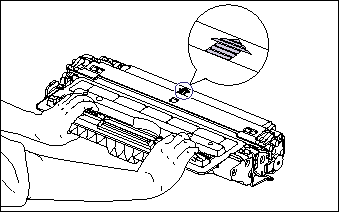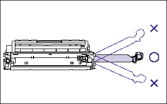 Do not hold the toner cartridge in a manner that is not directed in this procedure.