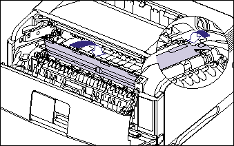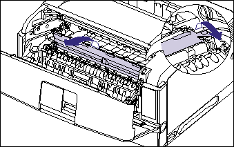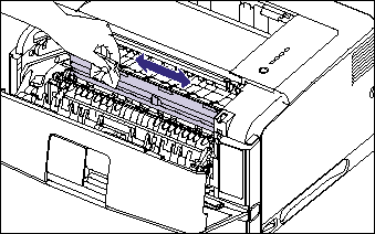 - Using a slightly dampened cloth with water, wipe off chipped paper and toner that are attached to the transport guide.