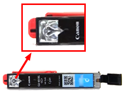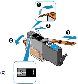 (1) Take a new ink tank out of its package, remove the orange tape (