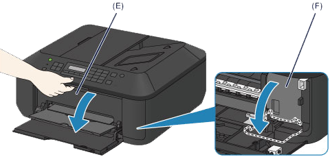 When the FINE cartridge holder moves to the replacement position, the head cover (F) OPENS AUTOMATICALLY.