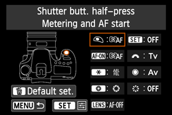 AF | ![]() | Metering and AF start | ![]() | ![]() | ![]() | ![]() | |||||