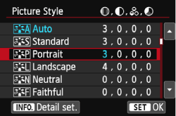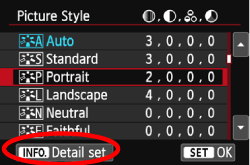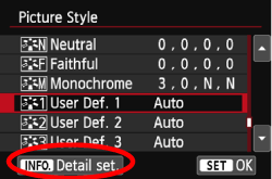 > key to select a Picture Style, then press the <INFO.> button.