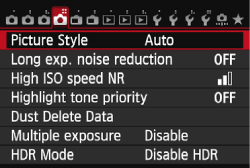- If the settings in a Picture Style registered under [User Def. *] have been modified from the base Picture Style settings, the Picture Style’s name will be displayed in blue.
