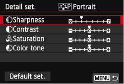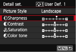9. Press the <MENU> button to register the modified Picture Style. The Picture Style selection screen will then reappear.