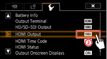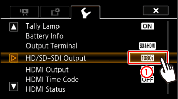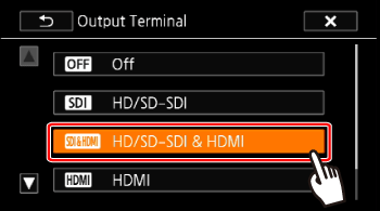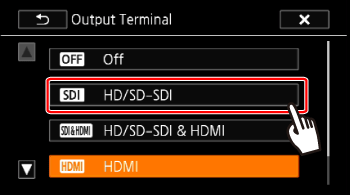 For HD/SD-SDI output, touch [HD/SD-SDI].