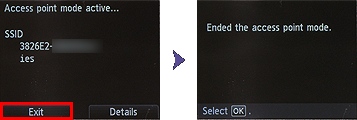 7. After printing or scanning is finished, select [ Exit ] using the function button on the printer to exit from the access point mode.