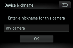 Touch within the frame and then enter a nickname (up to 16 letters and numbers) with the displayed keyboard. Press the [OK] button when finished.