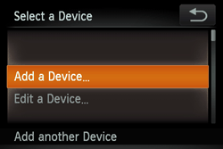 When you have registered multiple smartphones to the camera, the [Edit a Device] screen will be displayed if connection settings are erased. In this case, touch the