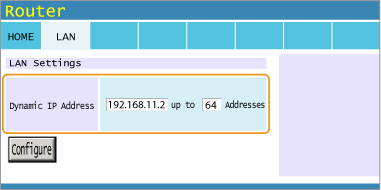 Checking the Router SettingsWhen you want to use a fixed IP address, check the settings of the DHCP that functions to automatically assign an IP address in a network. To avoid duplication of the IP address, you need to set an IP address outside the range of IP addresses assigned by DHCP. Since a router often functions as a DHCP server, check the router settings.