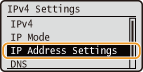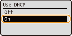 - If you turn OFF the power and ON again, an IP address differing from the current one will be assigned. This may disable printing. To use DHCP, specify one of the following settings after consulting the network administrator.