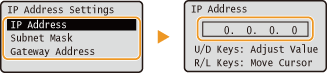 Restart the machine, and the specified IP address is configured in the machine.- The subnet mask and gateway address are set to "0.0.0.0."