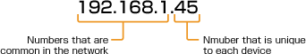 To Determine the IP AddressAn IP address consists of four numbers delimited by a period (.) (example: 192.168.1.45). Each number must be in the range from 0 to 255. In general, set the first three numbers to be the same as those for the router because they are common in the network. Determine the last number (for example, 45 in 192.168.1.45) that is different from that for other devices.