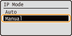 Using a fixed IP address4-B-1. Select <Manual>, and press [