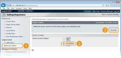 Click [Device Control], select [Hard Reset], and then click [Execute].