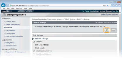 - Make sure that the Remote UI screen can be displayed with your computer by using the IPv6 address of the machine.