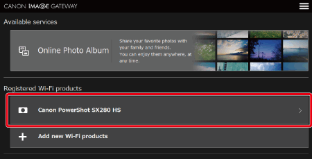] and the CANON iMAGE GATEWAY icon will be added.