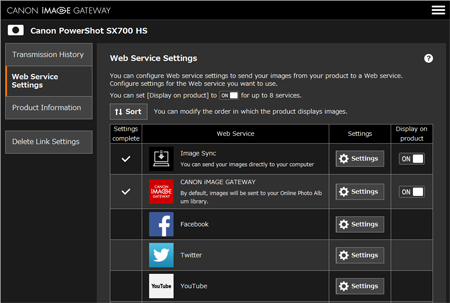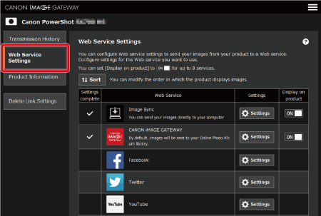1. When the following screen appears, click the [Web Service Settings] tab appearing on the left side of the screen to display the list of available web services.