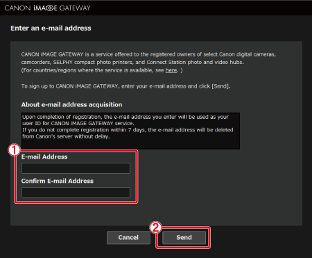 1. Start the web browser on your computer or smartphone and connect to CANON iMAGE GATEWAY (http://canon.com/cig).