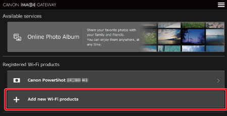 2. The CANON iMAGE GATEWAY top page is displayed. If you have already created an account, enter your