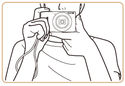 Keep your arms tight against your body while holding the camera firmly by the sides. Be sure that your fingers do not block the flash.