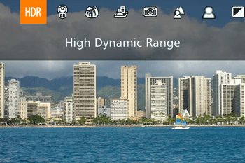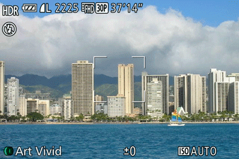 When the camera is set to HDR (High Dynamic Range) mode, three consecutive images are captured at different brightness levels each time you shoot, and the camera combines image areas with optimal brightness to create a single image. This mode can reduce the washed-out highlights and loss of detail in shadows that tends to occur in high-contrast shots.