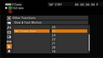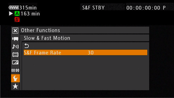 Other Functions] -> [Slow & Fast Motion] -> [S&F Frame Rate].