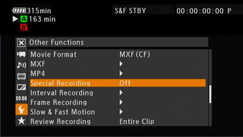 Other Functions] -> [Special Recording].